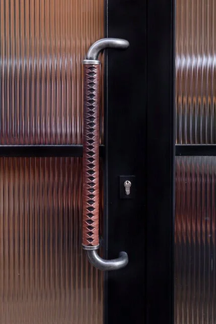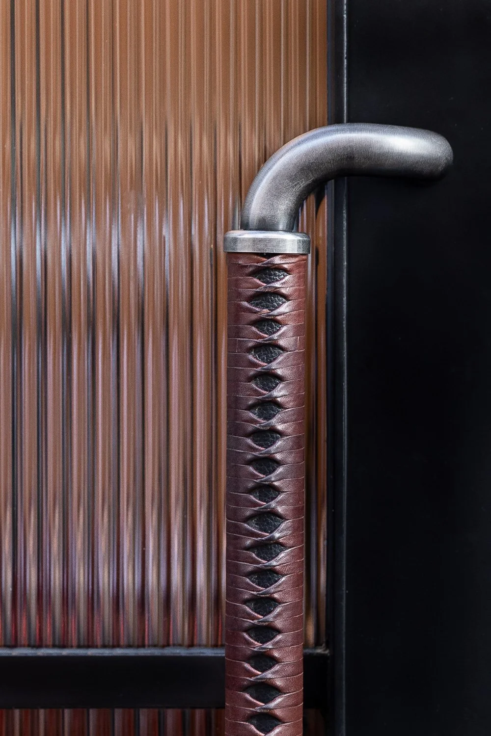 High carbon steel recycled from used automobile leaf springs and solid brass, hand sculpted